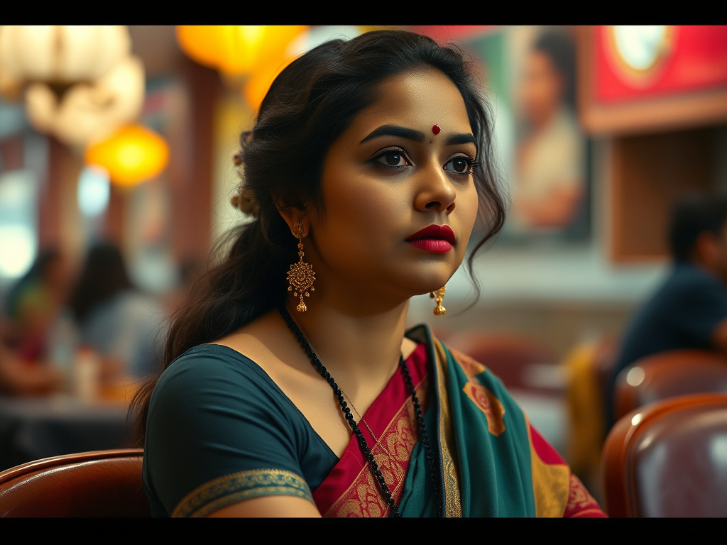 She was dressed in her usual attire, the cotton well-draped saree, dangling earrings, big bindi, and kajal that made her eyes look stunning.